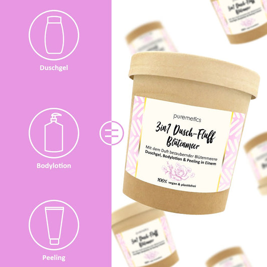 3-in-1 Dusch-Fluff mit Zuckerpeeling "Blütenmeer"