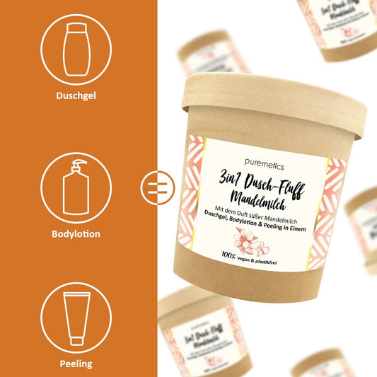 3-in-1 Dusch-Fluff mit Zuckerpeeling "Mandelmilch"