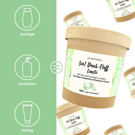 Ausverkauft3-in-1 Dusch-Fluff mit Meersalzpeeling "Limette"