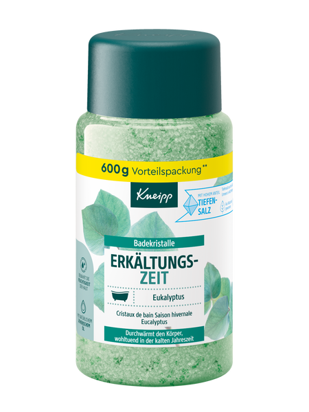 Die Kneipp® Badekristalle Erkältungszeit enthalten wertvolles ätherisches Eukalyptusöl.