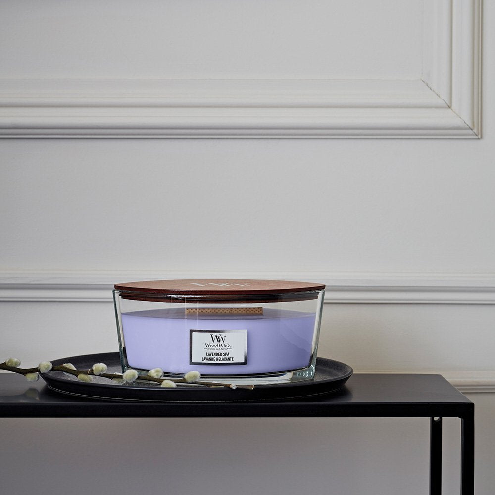Le candele WoodWick® Ellipse riempiono la tua casa con profumi sofisticati e un delicato crepitio creato dal nostro stoppino in legno naturale. L'inconfondibile crepitio e la lunga fiamma danzante delle candele WoodWick® Ellipse sono creati dalla fiamma brevettata Hearthwick®. Delizia i tuoi sensi con una ricca fragranza, uno stoppino scoppiettante e un elegante contenitore in vetro a forma di lacrima che ti consente di portare il piacevole bagliore di un caminetto in qualsiasi stanza della tua casa.