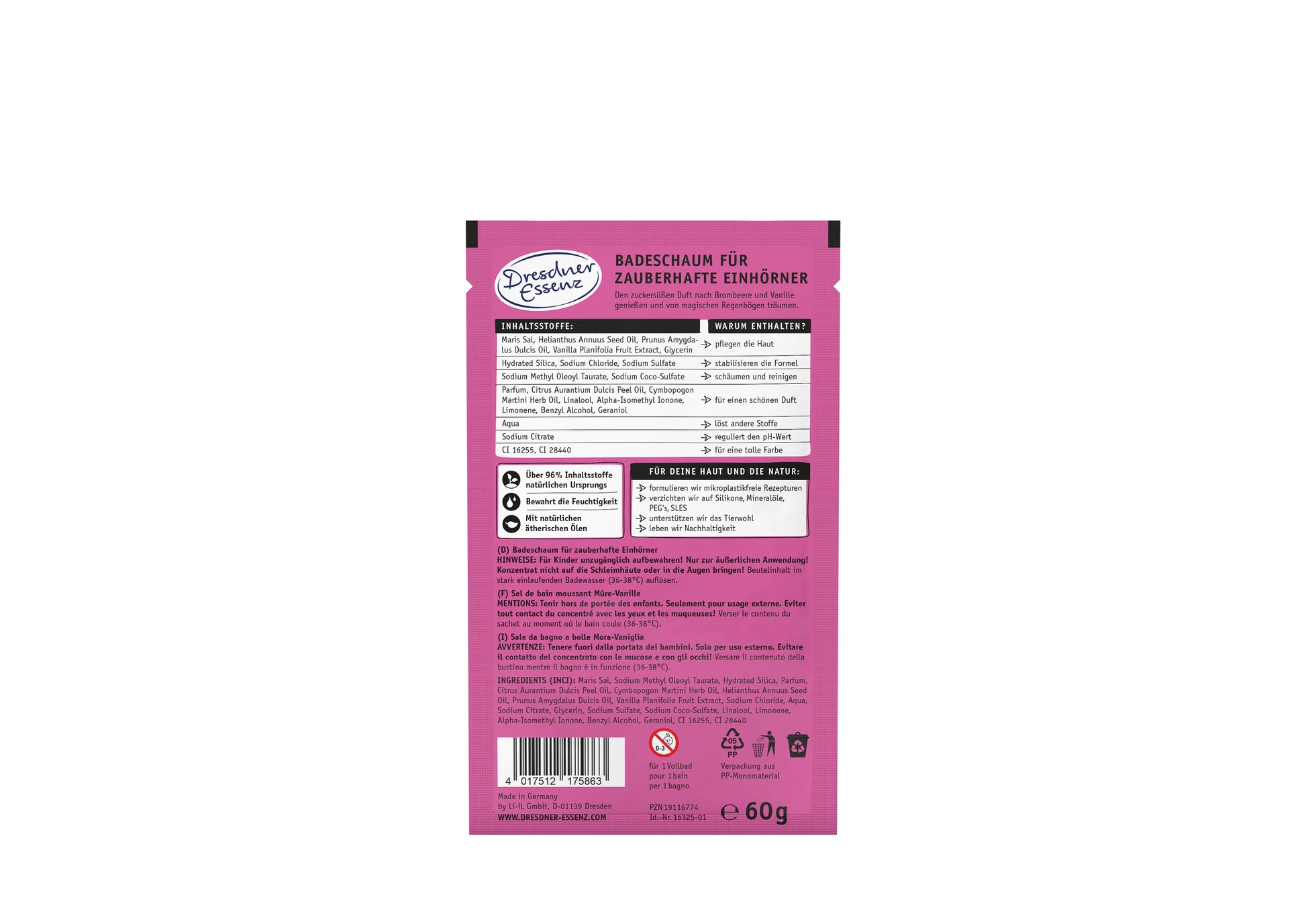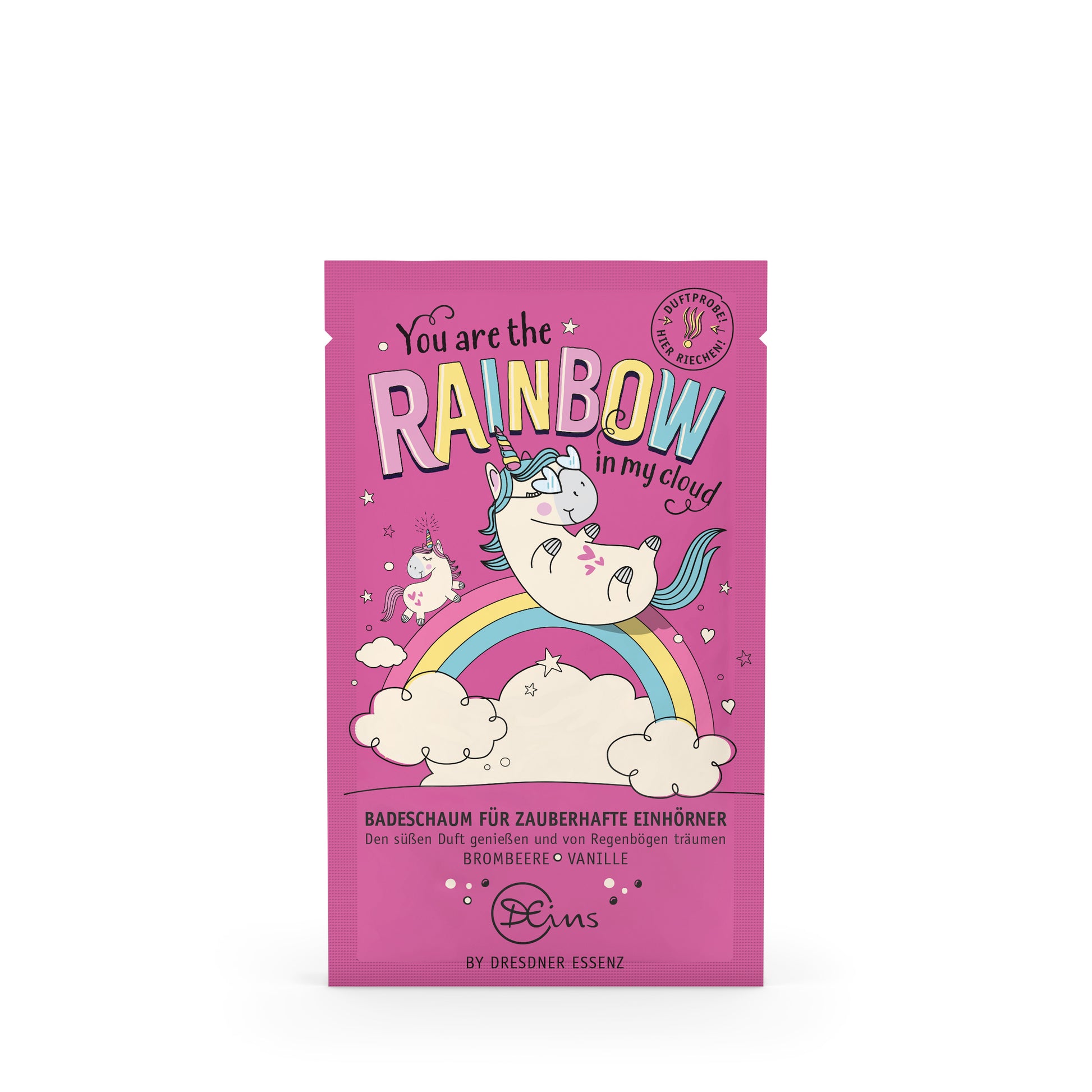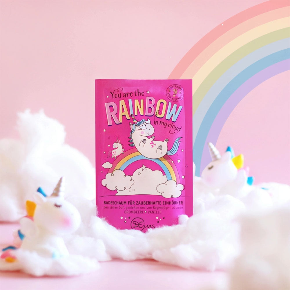 Genieße einen Moment der Entspannung, während sich dein Badezimmer mit dem himmlischen Badeschaum „You are the rainbow in my cloud“ in ein farbenfrohes Wunderland verwandelt. Lass den zarten Schaum um dich herum aufsteigen und spüre, wie der betörende Duft nach Brombeeren und Vanille die Luft mit Magie erfüllt. Deine Haut wird während des Badens mit Mandelöl gepflegt.