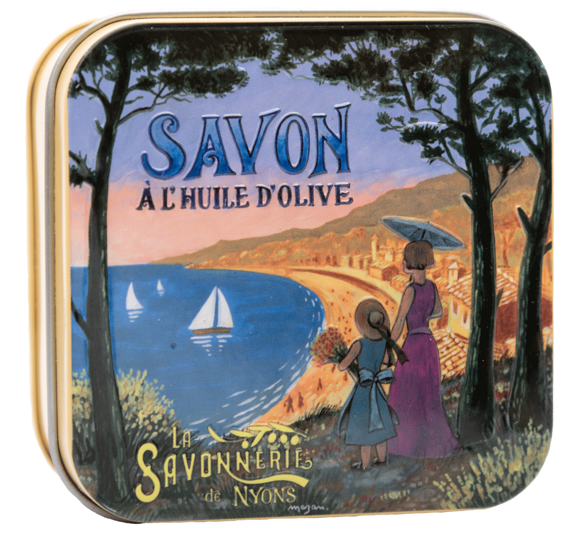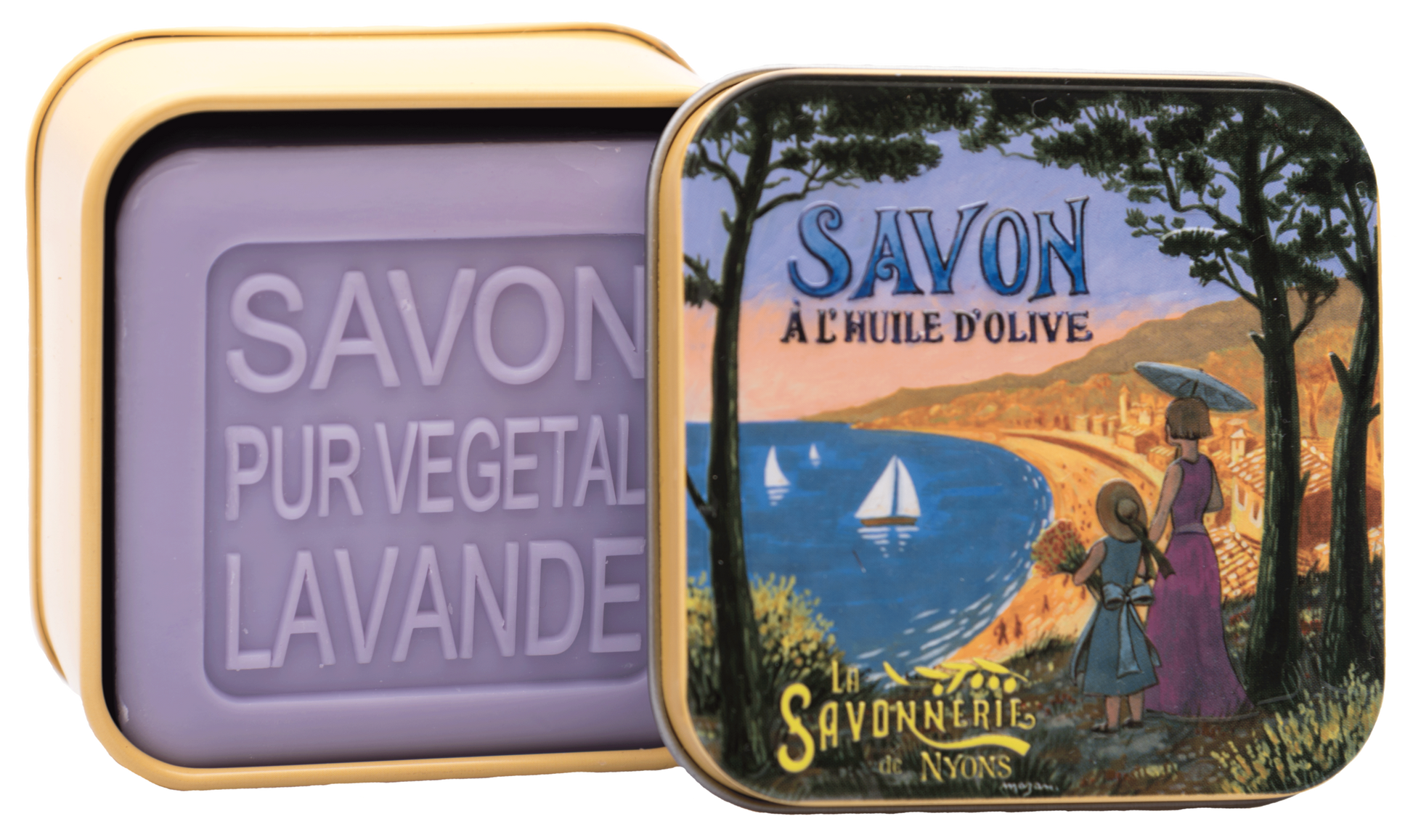 Diese 100g Seife wird in der Metallbox "Cote d'Azur" geliefert und duftet herrlich nach Lavendel. Diese Metallbox, welche eine Landschaft der Provence darstellt, wurde vom Maler Luc MAZAN illustriert und macht es zu einem dekorativen Objekt in Ihrem Zuhause. Ein ideales Geschenk für alle die Sie mögen und lieben.Diese Lavendelseife spendet Ihrer Haut Feuchtigkeit und macht sie dank ihrer feuchtigkeitsspendenden Eigenschaften weich. Die Seife ist mit Bio-Sheabutter und Nyons Olivenöl angereichert. Genießen Sie den Moment des Wohlbefindens mit dieser handgemachten Seife.
